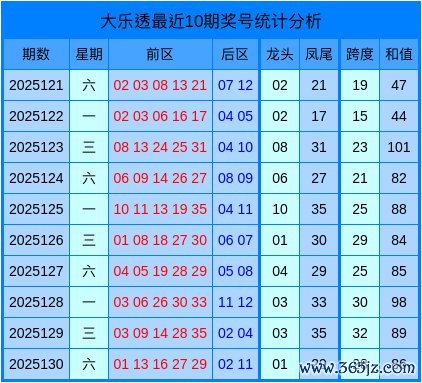 最近10期大乐透数据统计表